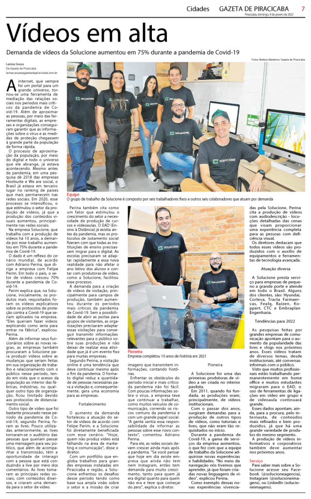 Matéria realizada pelo Jornal Gazeta de Piracicaba/SP.
